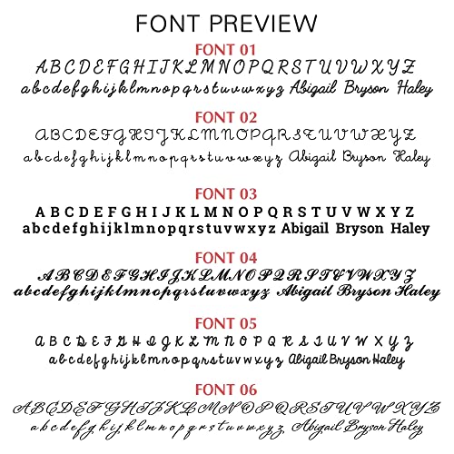 • Character limits: Up to 12 characters/each name. We don't recommend having all the letters of your name in uppercase with this font.