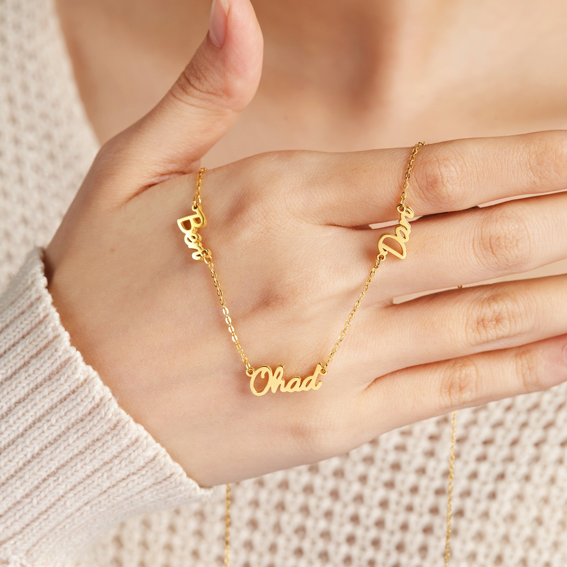 Exquisitely personalized from children's names, this mom necklace with names will become an unique statement piece for mothers. This dainty necklace has kids' names attached on the chain as a symbol of mother-children bond. If you are looking for the perfect gift for mom, look no further than this children's name necklace. She is sure to love it!