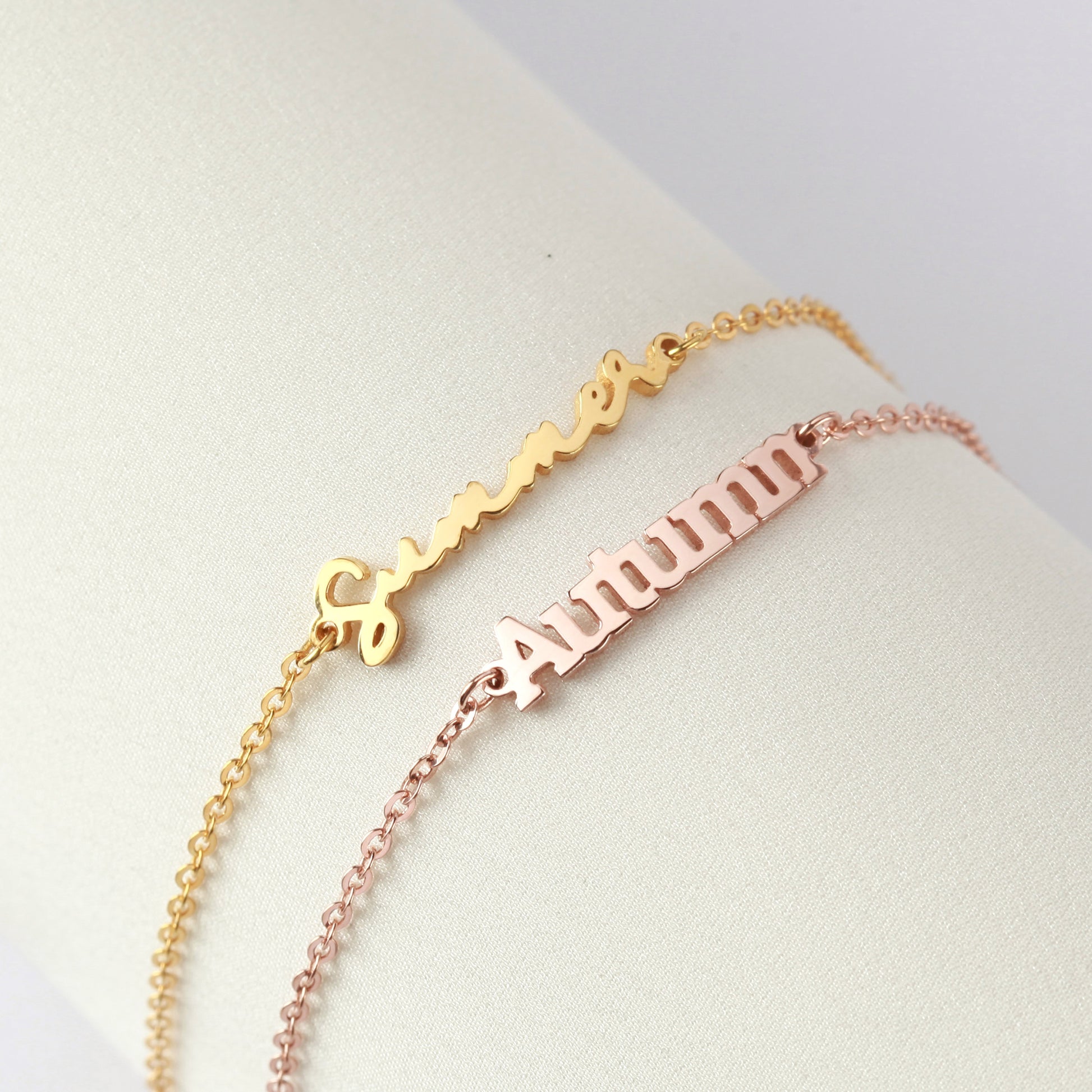 Customized with your name in a scripted font, this personalized name bracelet is a lovely wear for any occasion. Available in sterling silver with 18K yellow and rose gold plate options, it is a feminine, elegant gift for your sisters, friends or cousins.